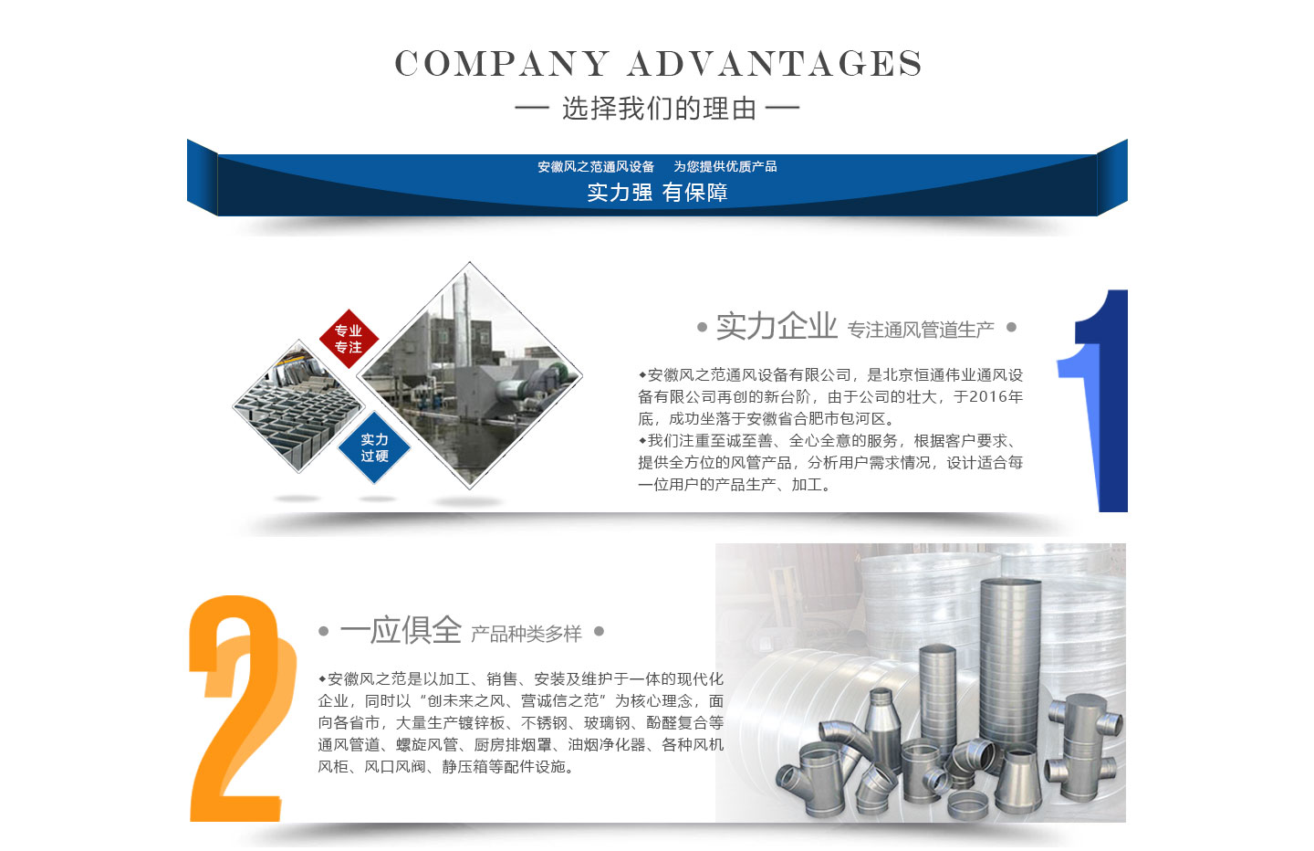 安徽風(fēng)之范通風(fēng)設(shè)備有限公司,是北京恒通偉業(yè)通風(fēng)設(shè)備有限公司再創(chuàng)的新臺階,多年來,公司員工憑著“誠信敬業(yè)、團(tuán)結(jié)拼搏、勇于開拓、務(wù)實進(jìn)取”的企業(yè)精神,先后承接了多項重點工程項目,使公司健康穩(wěn)步發(fā)展。現(xiàn)由于公司的壯大,業(yè)務(wù)的拓展,又于2016年底,成功坐落于安徽省合肥市包河區(qū)。本公司生產(chǎn)設(shè)備精良,技術(shù)力量雄厚,質(zhì)保體系完善!讓用戶體驗到,貼心的服務(wù),無憂的售后!風(fēng)之范是以加工、銷售、安裝及維護(hù)于一體的現(xiàn)代化企業(yè),同時以“創(chuàng)未來之風(fēng)、營誠信之范”為核心理念,面向全國各省市,大量生產(chǎn)鍍鋅板、不銹鋼、玻璃鋼、酚醛復(fù)合等通風(fēng)管道、螺旋風(fēng)管、廚房排煙罩、油煙凈化器、各種風(fēng)機(jī)風(fēng)柜、風(fēng)口風(fēng)閥、靜壓箱等配件設(shè)施。廣泛承接商場、工廠、酒店、寫字樓、地下室等,消防排煙工程、除塵凈化工程、室內(nèi)通風(fēng)工程、暖通空調(diào)工程、廚房排煙凈化工程。我們力求上進(jìn),追求,歡迎各界人士技術(shù)指導(dǎo),經(jīng)濟(jì)合作,共創(chuàng)美好明天!